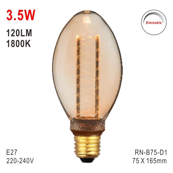 | 3.5W E27 LED B75 Bulb, Warm White Deco Light - Dimmable | |