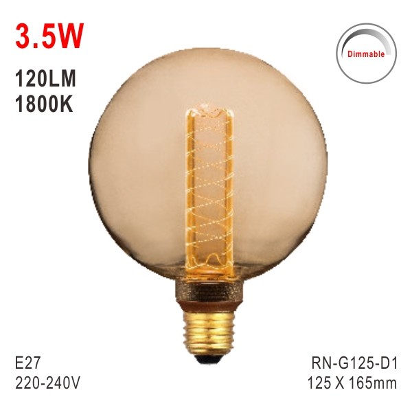 3.5W E27 LED G125 Bulb, Warm White LED Bulb, Deco Light - Dimmable